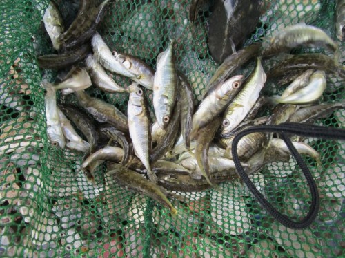 (Nicht ?) Überraschend wurden in der neu strukturierten Strecke zeitweise Wanderstichlinge in großer Zahl beobachtet.