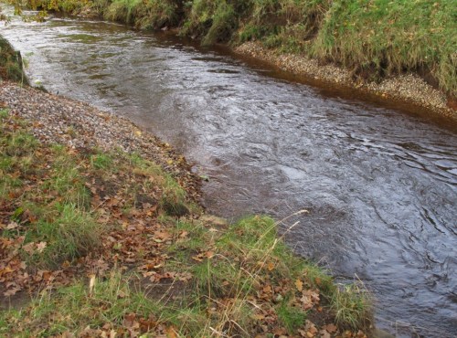 Das große Depot an der oberen Rausche ist vom kürzlich in drei Schüben durchgegangenen mittleren Hochwasser schon gut angenagt worden.