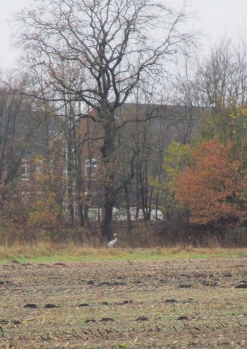 Nein, es ist ein einzelner Kranich (ohne Rufen), der sich für das Umfeld des abgeernteten Maisfelds interessiert.