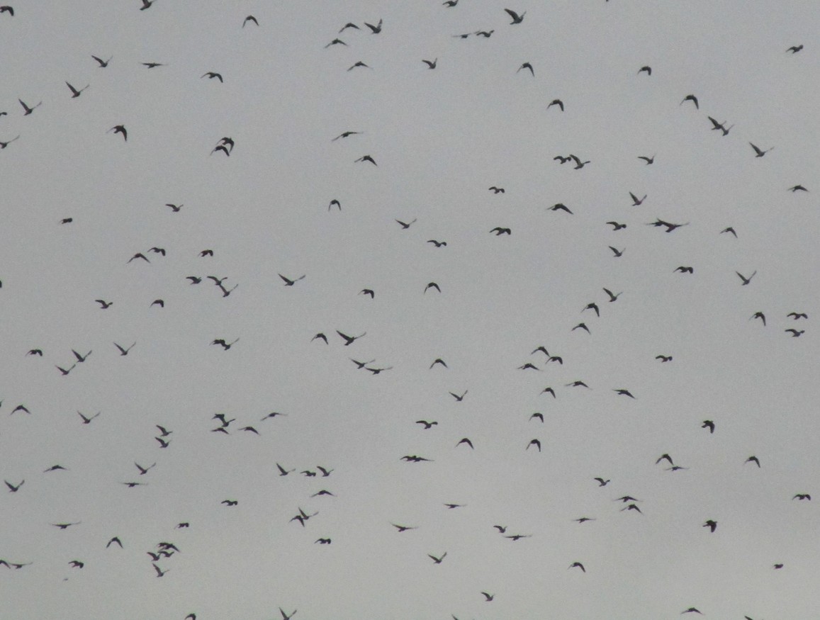 Ich Glücklicher kann über mir die Vögel identifizieren! – Wiederholung des Überflugs an Art und Zahl, nur ohne Erschrecken: Über 200 Ringeltauben – das muss man erlebt haben!