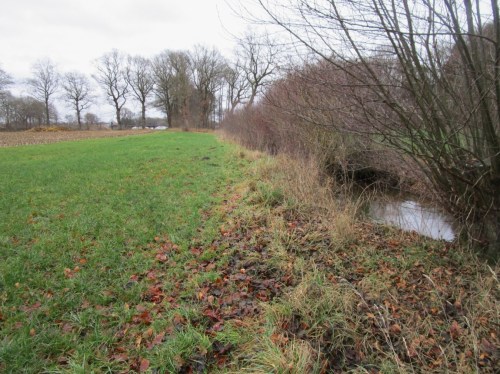 Die nächste Situation, weiter bachauf im Pinnau-Einzugsgebiet, stellt sich anders dar. – Angang über Maisacker, …