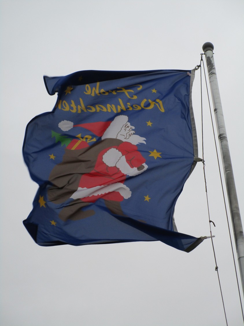 Der Weihnachtsmann schreitet munter voran – bei sssssteifem Winterwind (Klimawandel-Dezembertemperaturen vor Absinken noch bei fast 10 Grad C).
