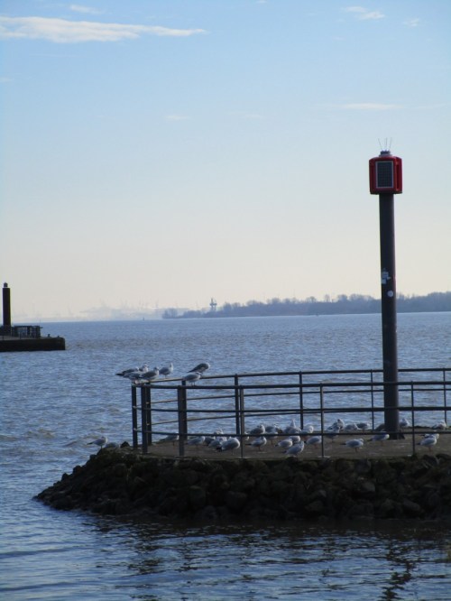 Das lässt mich zum Schulauer Hafen radeln, wo Stockenten und Lachmöwen das Lee hinter den Kaimauern nutzen.