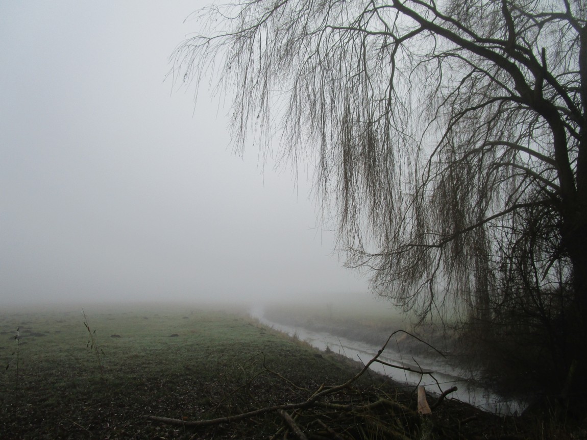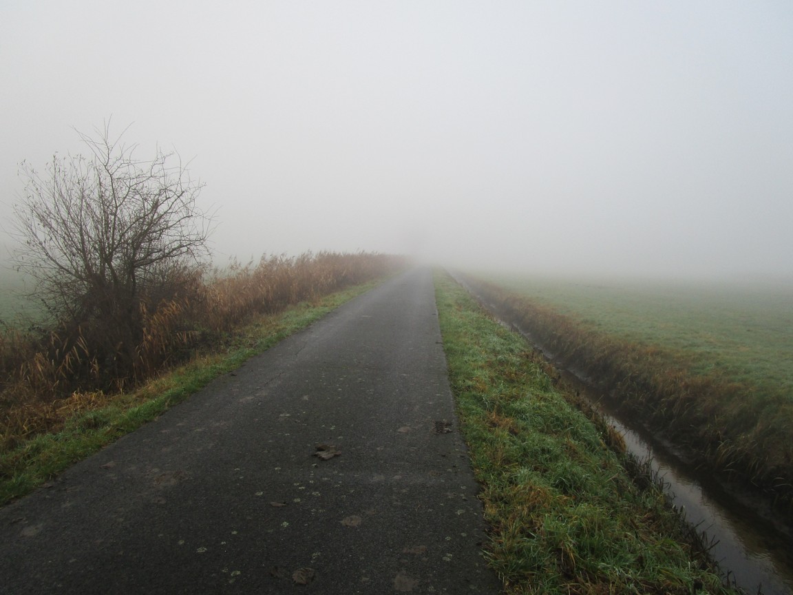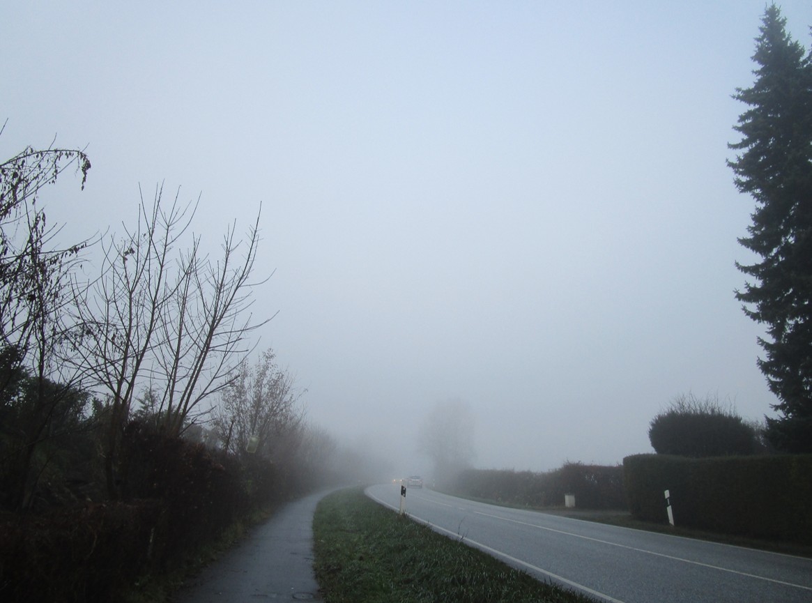 Es stellt sich auf der 17 km-Runde heraus, dass fast soviel Luftfeuchte auf der Brille kondensiert, wie kürzlich bei der Nieselfahrt drannieselte. Insgesamt 3 Stopps an geeigneter Stelle, um volle Sicht durch Brilleputzen wiederherzustellen (ungefährliche Strecken, wie z.B. hinterm Elbdeich im halben Blindflug geradelt), sind erforderlich.