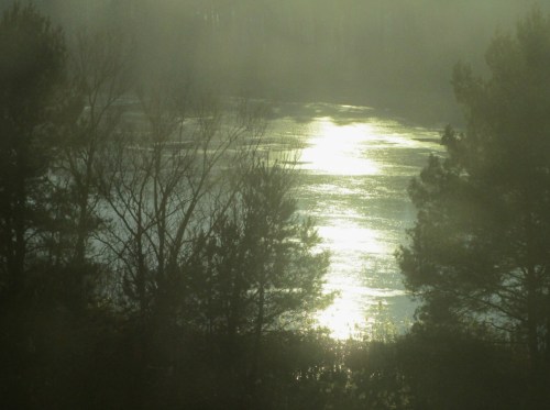 Den Elbeblick bei Stendal mit Fernblick auf Tangermünde kann ich diesmal nicht bieten – zu schnell rast der ICE (kammernichmeckern!). Als Ersatz spiegelt hier ein zugefrorener Baggersee westlich der Elbe, Stendal.
