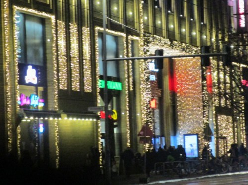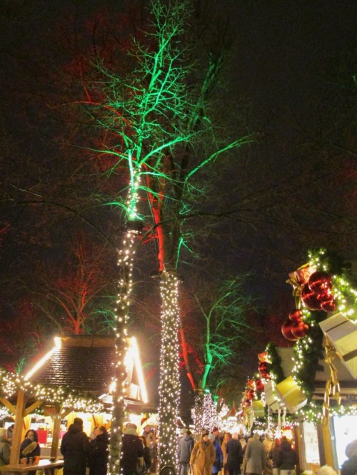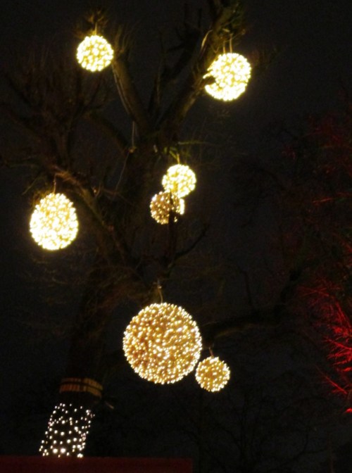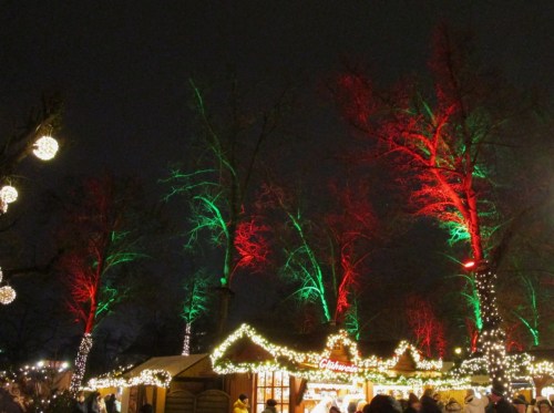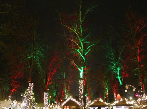 Eine Lichterstadt mit Lichtermeer erwartet uns. – Das Foto täuscht, die Menschenfülle ist lückenhaft, sehr gut erträglich.