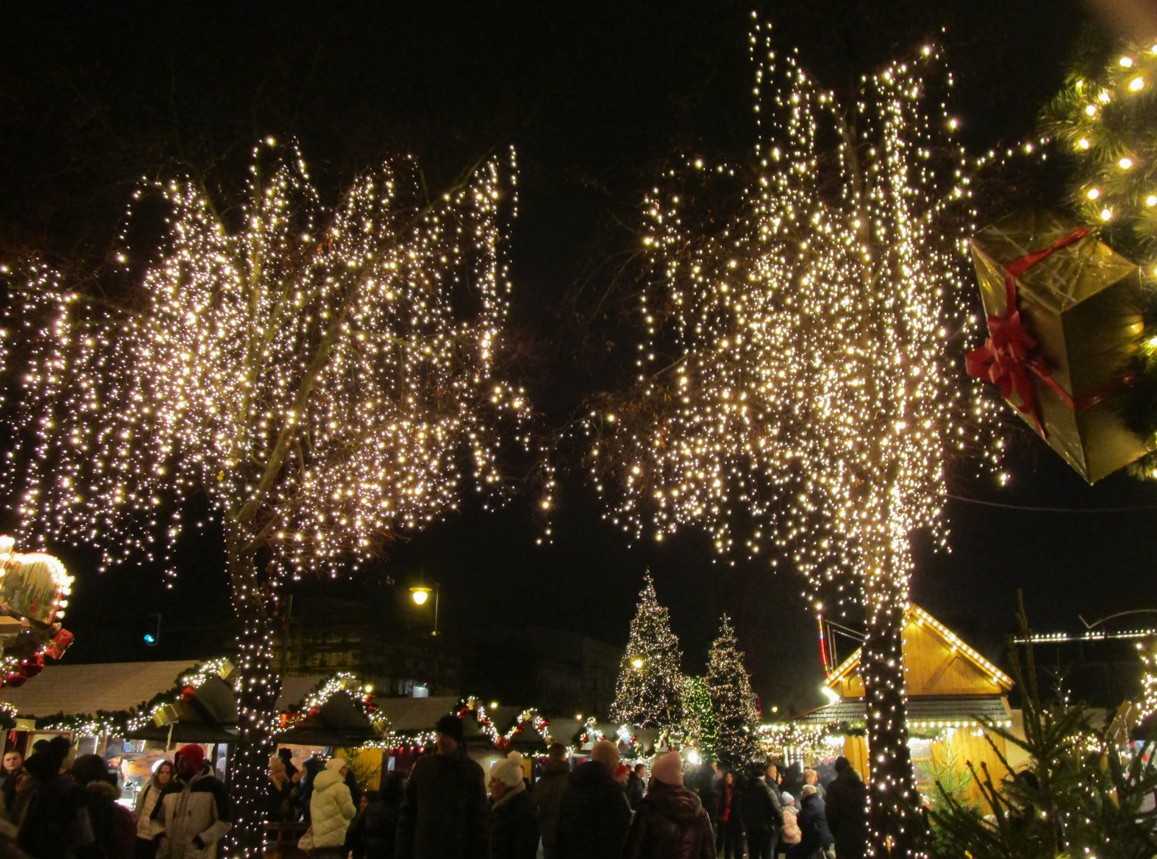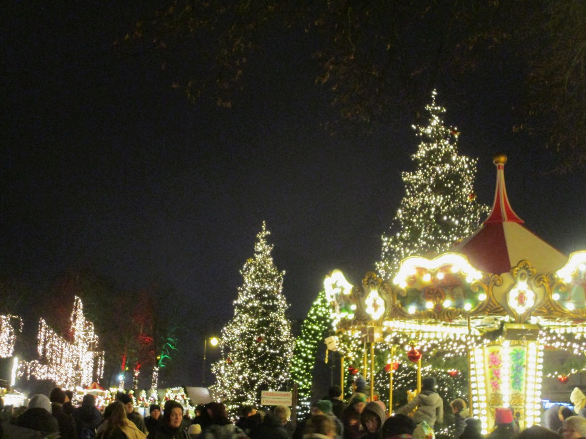 Eine Lichterstadt mit Lichtermeer erwartet uns. – Das Foto täuscht, die Menschenfülle ist lückenhaft, sehr gut erträglich.