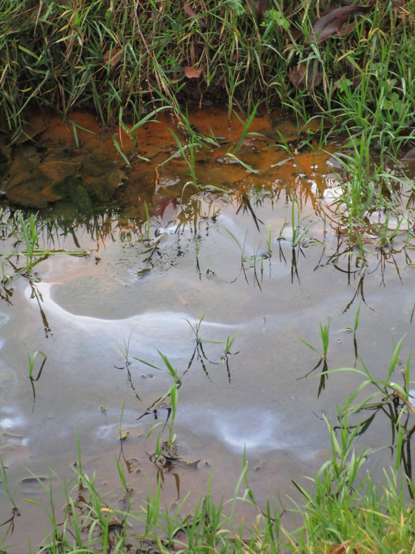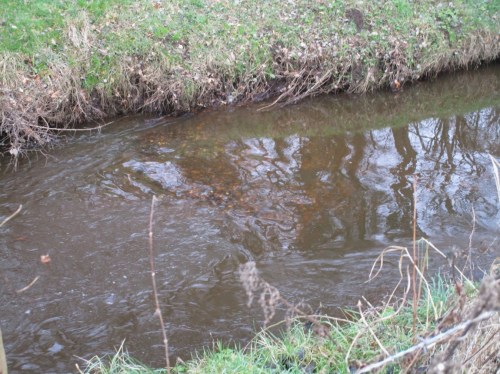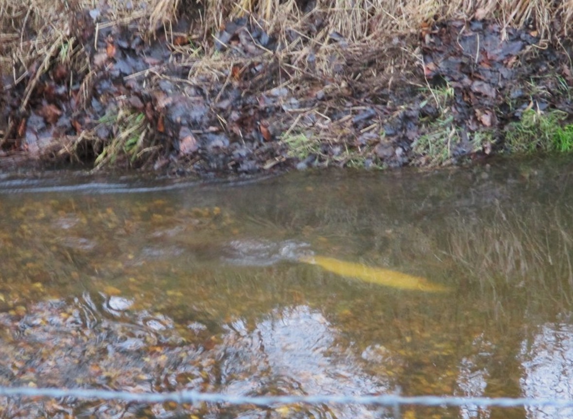 Da ich geschützt hinter einem Baum stehe, kann es gut sein, dass einer der großen Laicher im Foto erfasst wurde, während die anderen in Uferverstecke verschwanden.