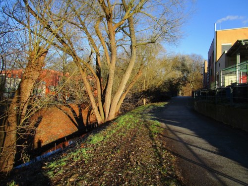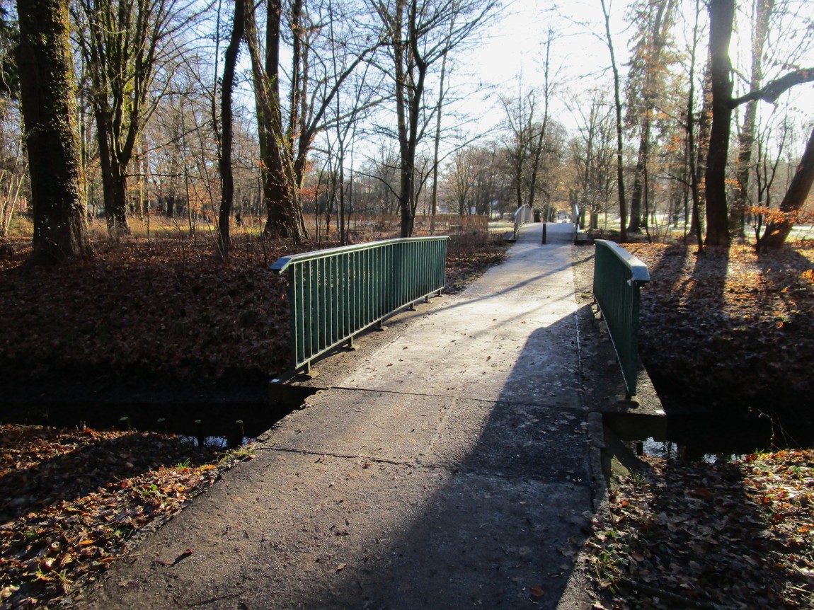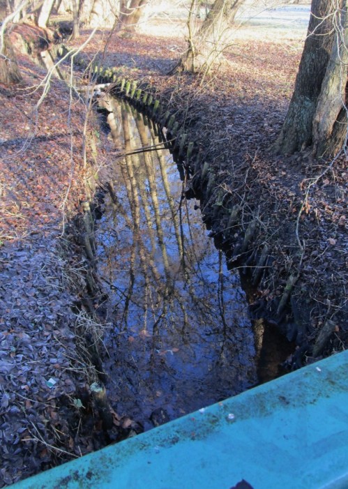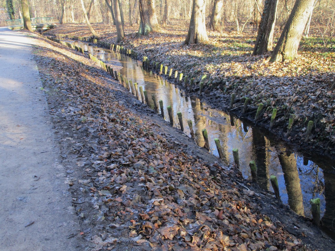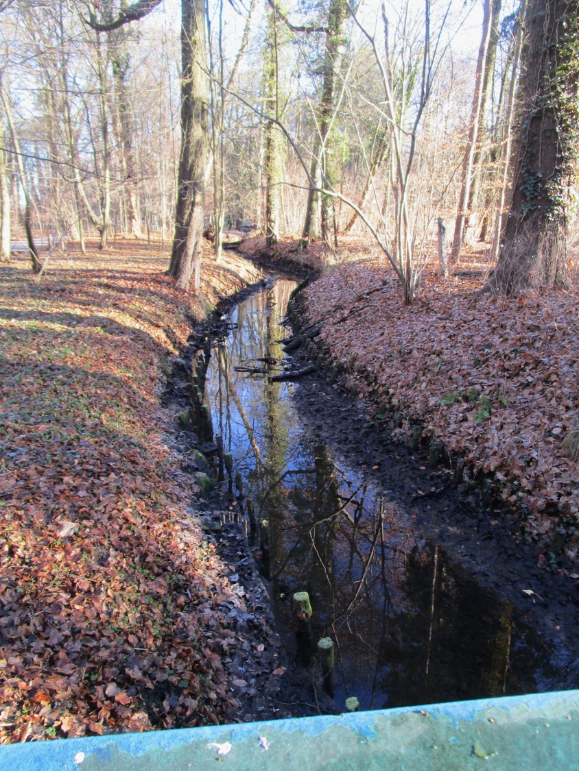 … Richtung Park-innere Stillgewässer (die Wasserzufuhr liesse sich mit Begrenzen auf Zeiten höherer Abflüsse zugunsten des Bachs ändern).
