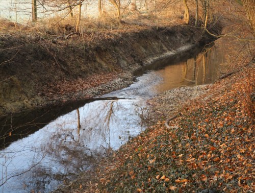 Nur zeitweise fliesst der Bach. Umso wichtiger für Wald und Grundwasser ist das Halten von „Hochwässern“ – wie Regen plus Schneeschmelze kürzlich.