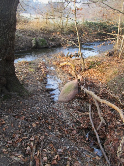 Bei diesen „Fluten“ sind immerhin etliche Kiesanteile aus dem Waldbereich auf die auch an der Mündung eingebrachten Kiese transportiert worden.