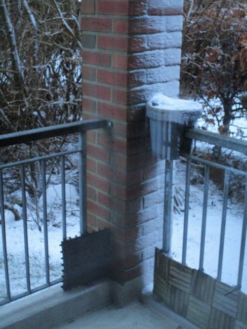 Darauf soll es im Lauf des Tages noch weiterschneien, wenngleich es wohl insgesamt weniger bleibt, als es ostsüdöstlich von hier im Niedersächsischen bereits aussieht.