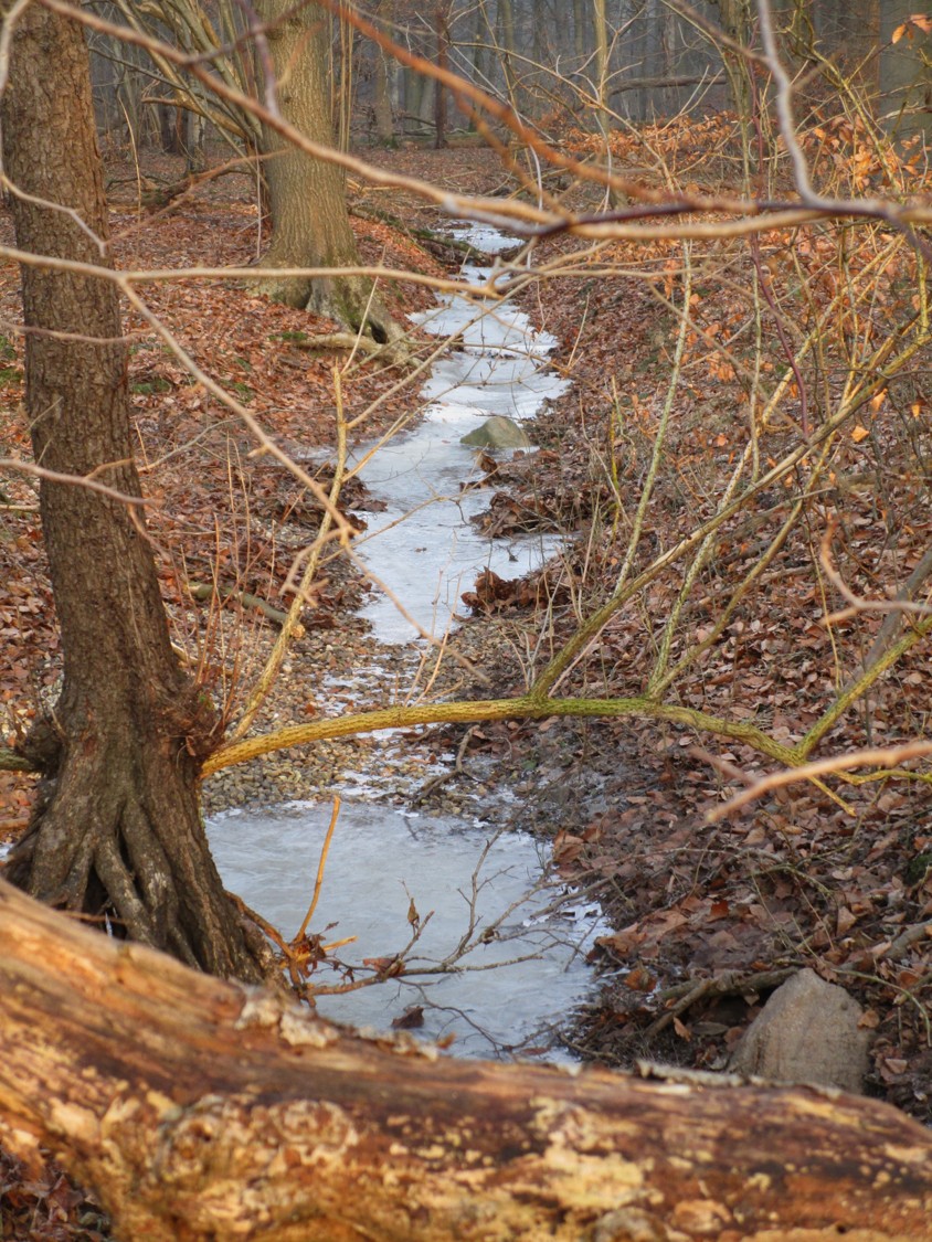 Nur zeitweise fliesst der Bach. Umso wichtiger für Wald und Grundwasser ist das Halten von „Hochwässern“ – wie Regen plus Schneeschmelze kürzlich.