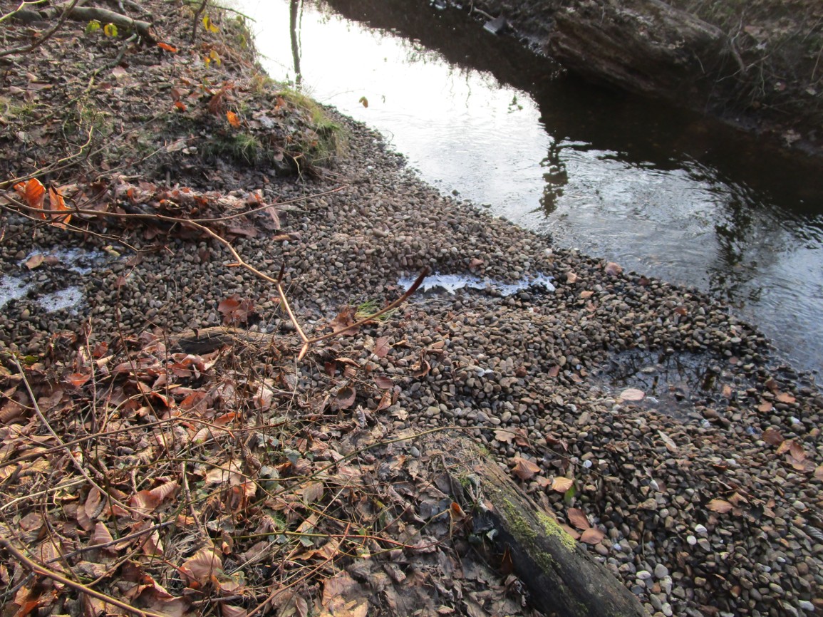 Bei diesen „Fluten“ sind immerhin etliche Kiesanteile aus dem Waldbereich auf die auch an der Mündung eingebrachten Kiese transportiert worden.
