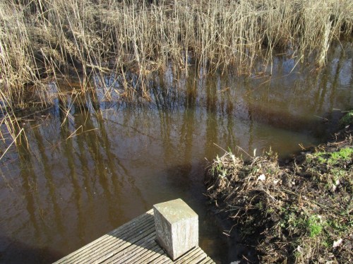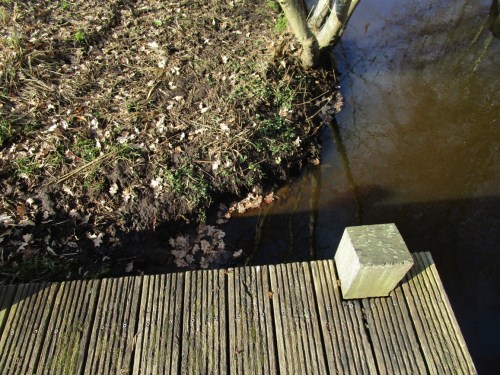 Das muss ich gelegentlich näher untersuchen – Muschelschalen liegen auf dem Sediment. Ob es sich um kürzlich erfrorene Körbchenmuscheln handelt? Oder wer hat hier einen kurzen Snack eingelegt? (Im Vorjahr lagen hier ähnlich auffällig hell leuchtende Kiesel, von aktivem Viehzeuch offenbar auf Nahrungssuche umgedreht, freigelegt.)