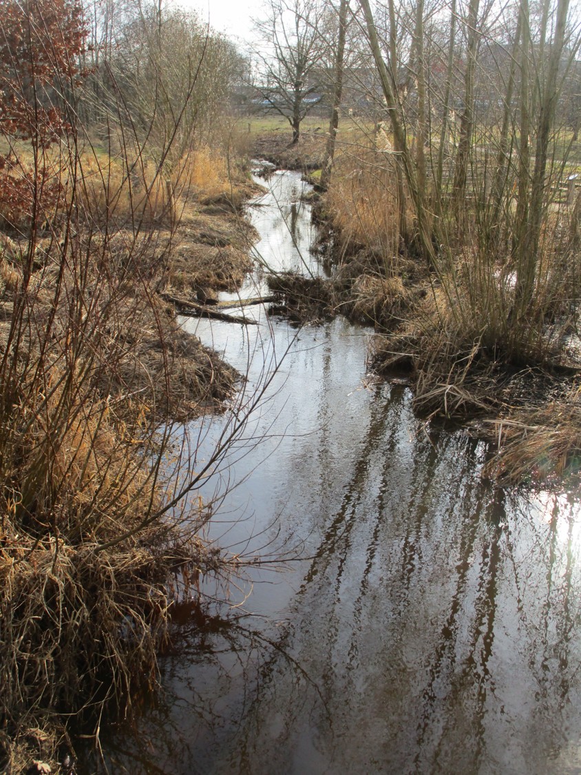 Die Ufer sind gemäht, Weiden bestimmen das Bild. Charakteristischerweise stünden hier am nassen Bachufer Erlen.