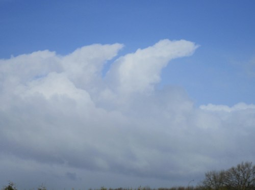 Das geht ja gut los. Blauer Himmel, Wind von schräg, oft genug schräg von hinten. Am Horizont stehen weisse Gebilde, mit Grauerem drunter.