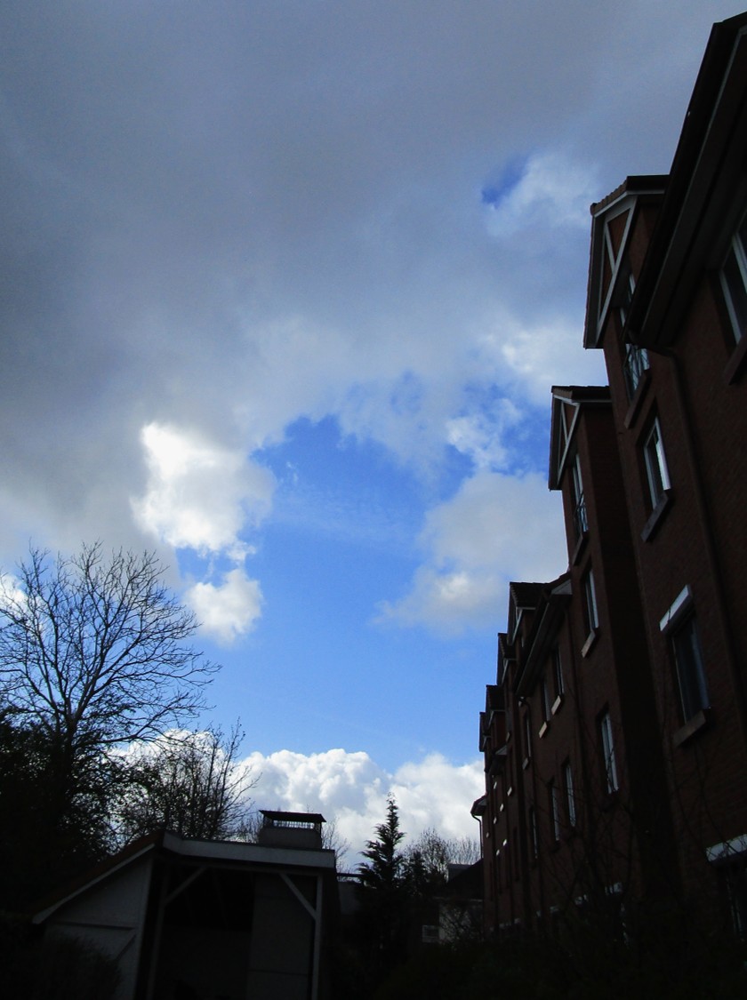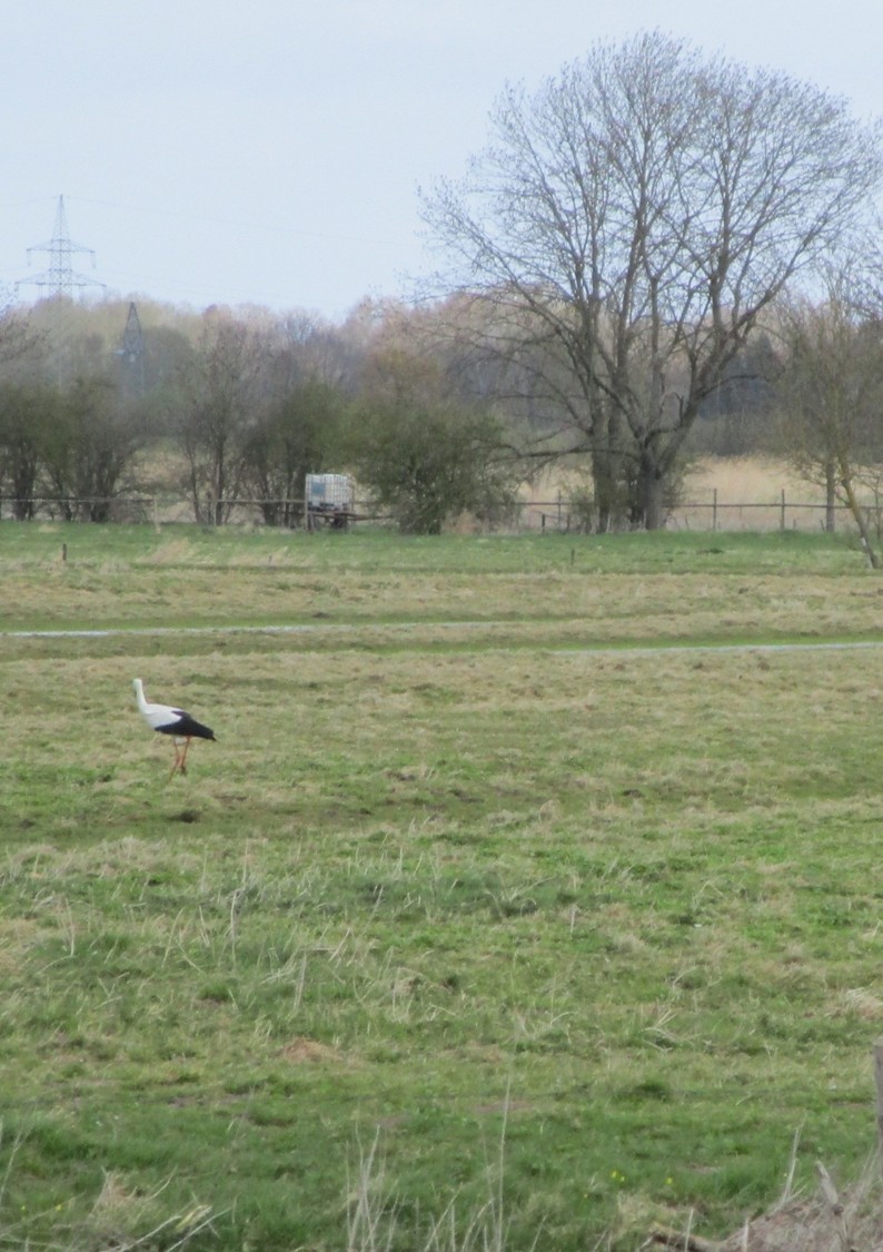 Während ich mich wundere, zieht Osterfeuergestank in meine Nase (ach ja, ist ja Ostern!). Ob der Storch dieser Fahne ausgewichen ist?