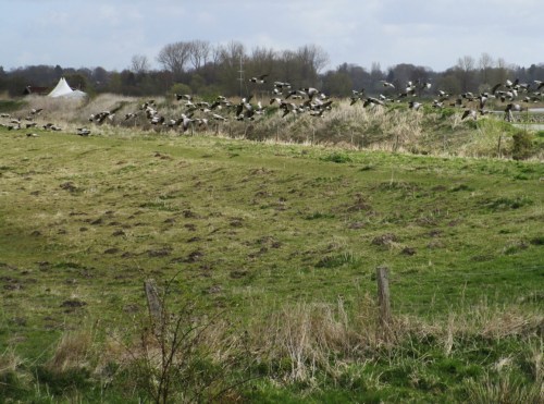 Da sich ein Bussard an mir stört, abzieht, lüften einige über den Weg zur Vogelstation, …