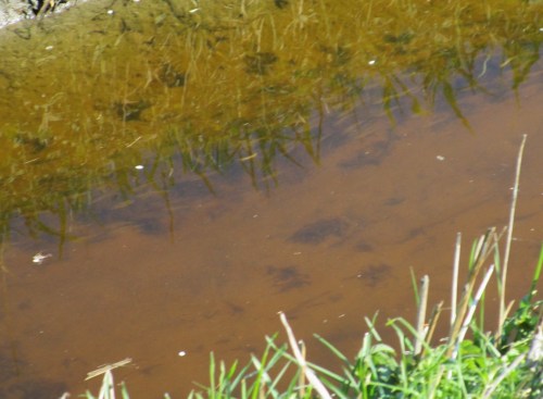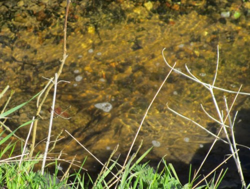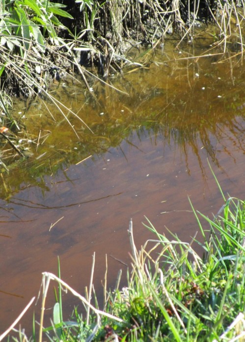 Schnell ein Blick in den Sauerbeck – Windeinstau, „gut Wasser“ bis vor den Geesthang – die nun kurze Bachturbulenz stellt ein gutes Versteck dar.