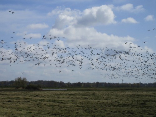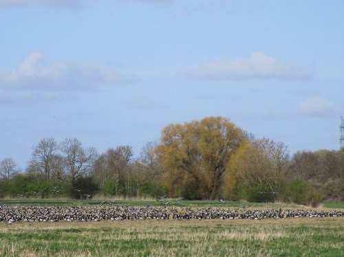 … bringt die bislang hier äsenden Nonnengänse auf. Daher also der stete Zuflug und die vorher gesehene Massenansammlung.