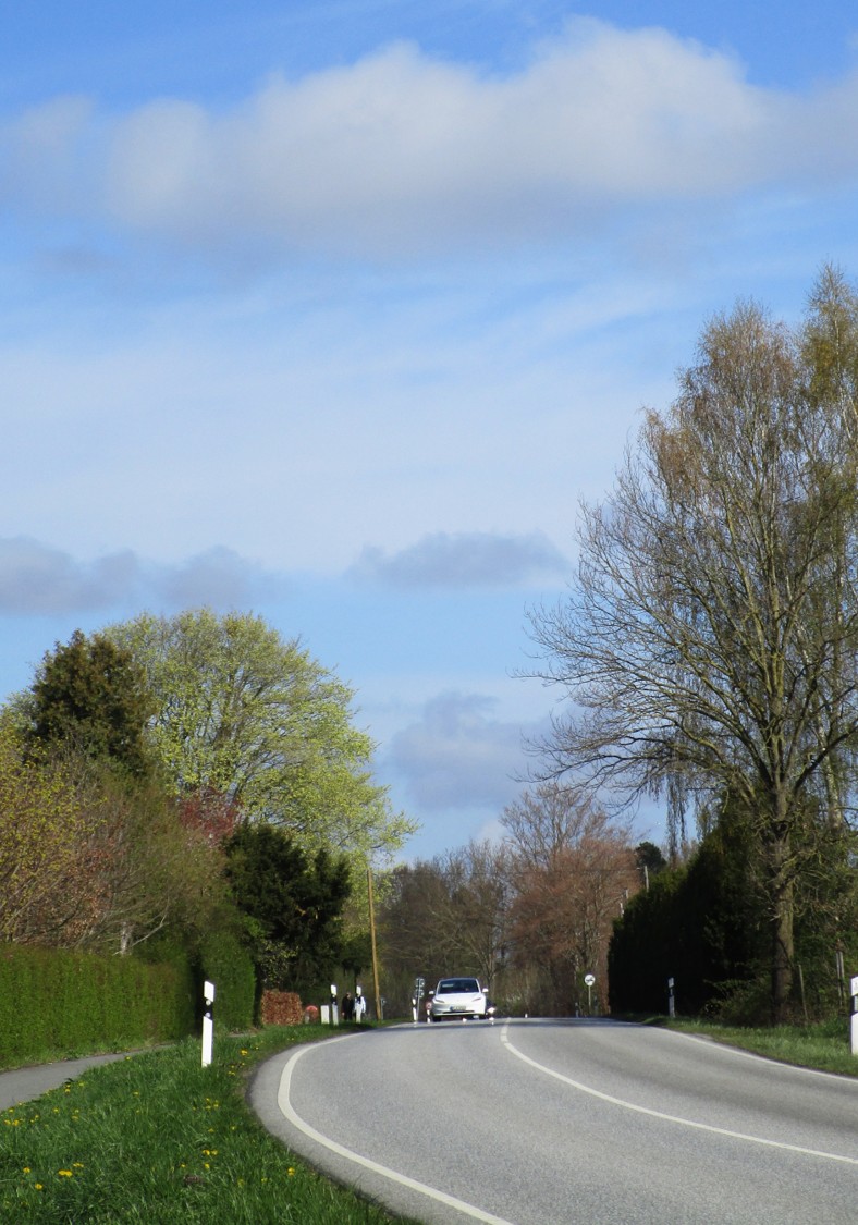 In der öden, offenliegenden Strecke des folgenden Marschkanals rasen andere bei wechselnden Schatten Passierender mal auf-, …