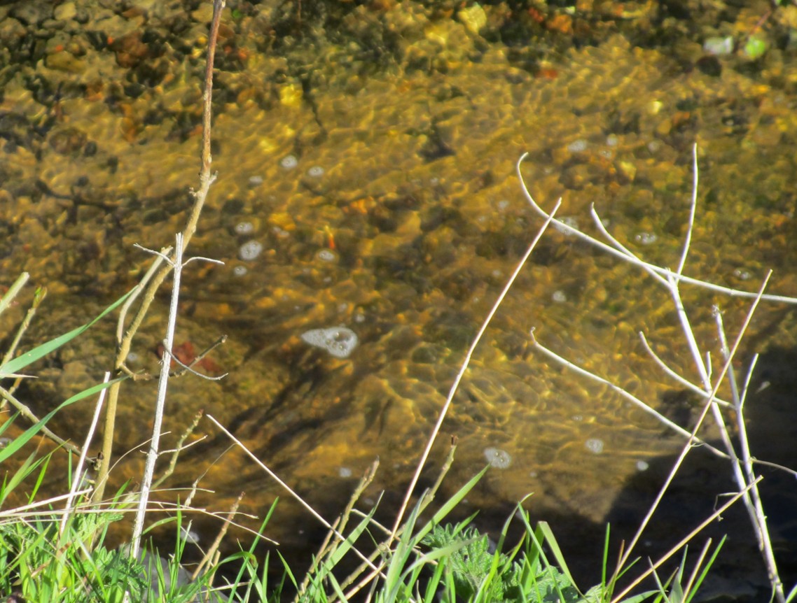 Schnell ein Blick in den Sauerbeck – Windeinstau, „gut Wasser“ bis vor den Geesthang – die nun kurze Bachturbulenz stellt ein gutes Versteck dar.