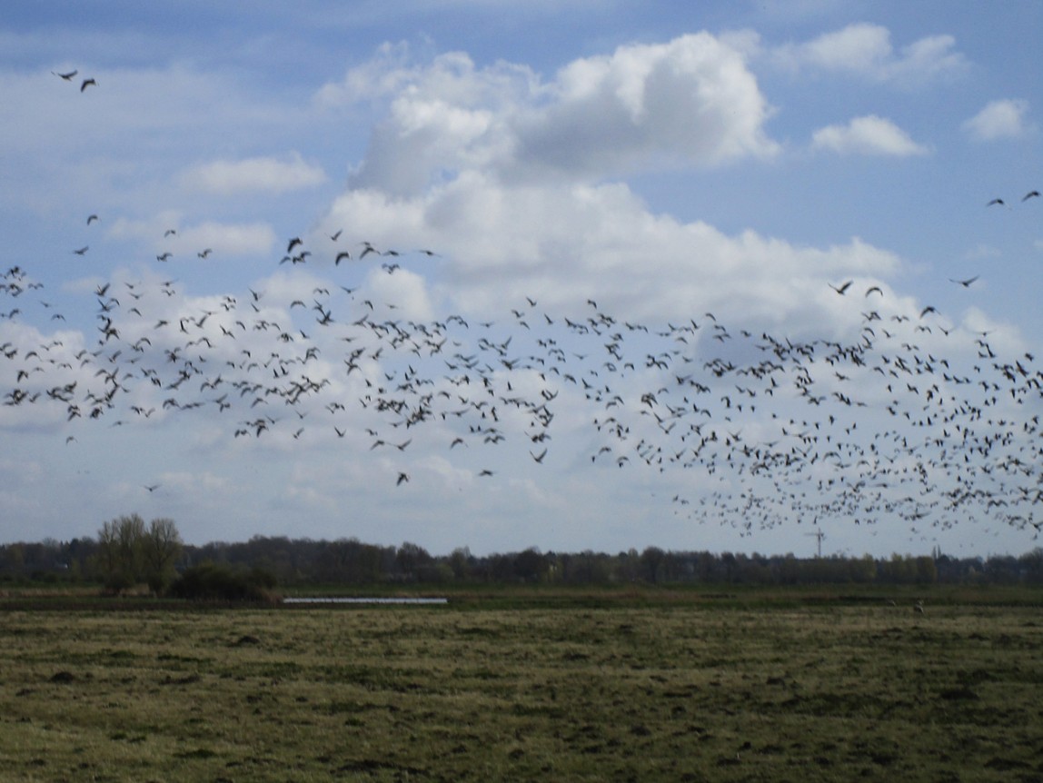 … bringt die bislang hier äsenden Nonnengänse auf. Daher also der stete Zuflug und die vorher gesehene Massenansammlung.