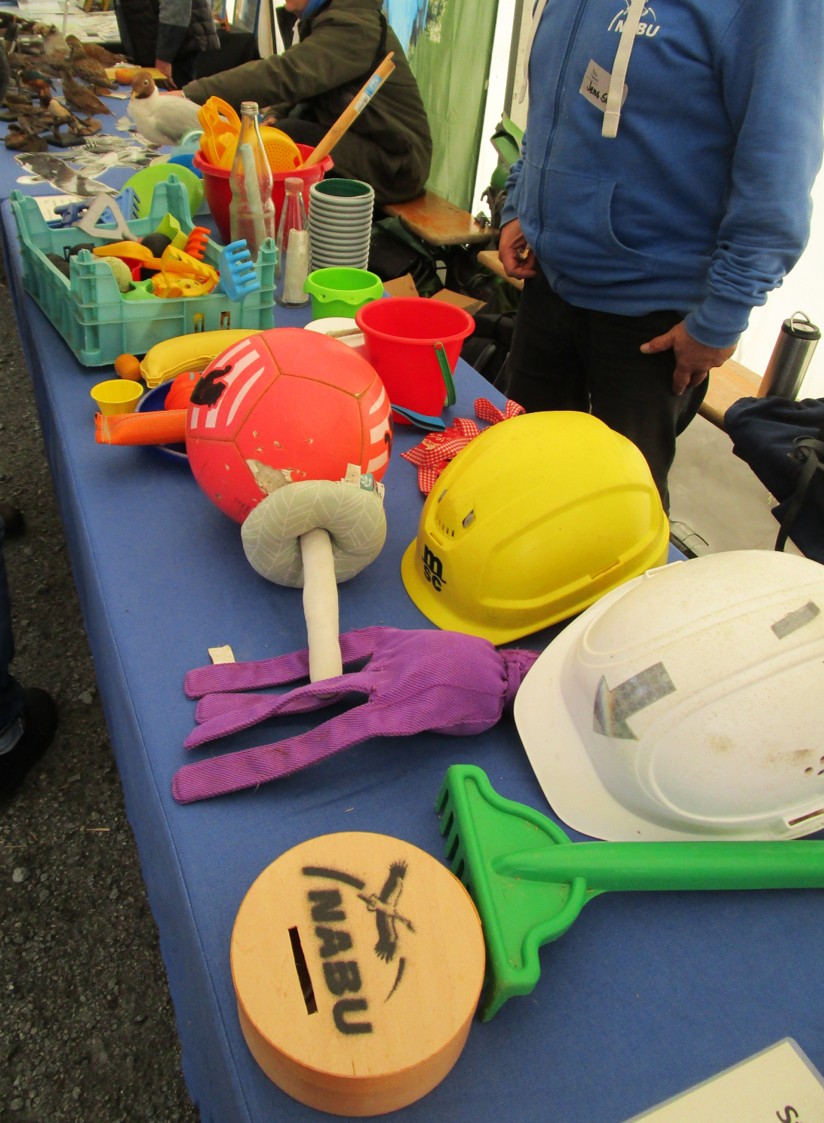 Das Angebot Teilnehmender ist bunt – hier Strandfunde …, man glaubt es kaum. – Spenden sind gern gesehen.