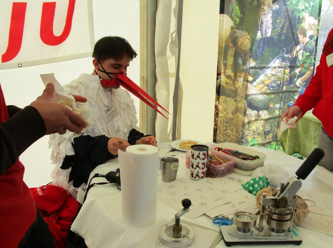 Auch ein Storch ist anwesend – bei der NAJU, der Naturschutzjugend. Er widmet sich gerade seinem 2. Frühstück.