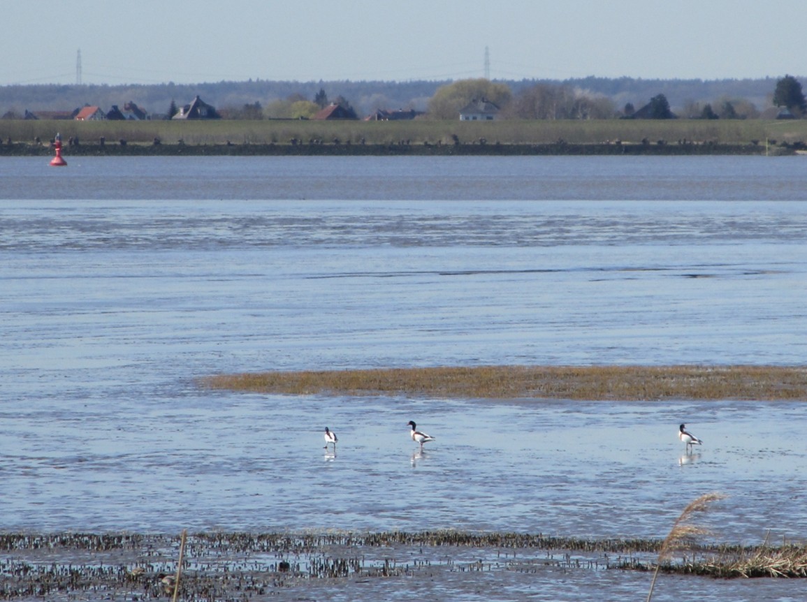Da sind die Brandgänse eifrig auf dem trockenfallenden Watt mit Futtern beschäftigt, umgeben von speziellen Enten- und Limikolenarten.