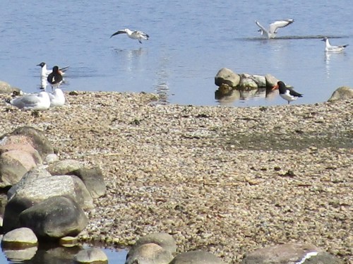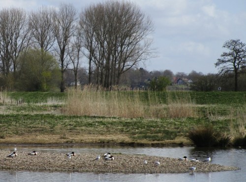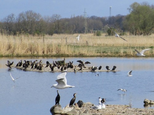 Die Kiesinseln sind beliebt. Neben unterschiedlichen Gänsen und Enten sehe ich vor allem Fischliebhaber.