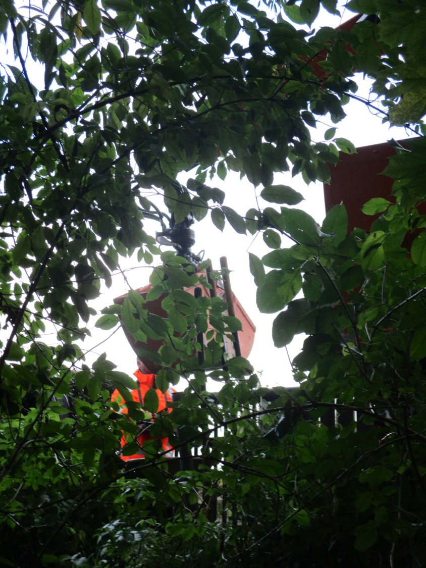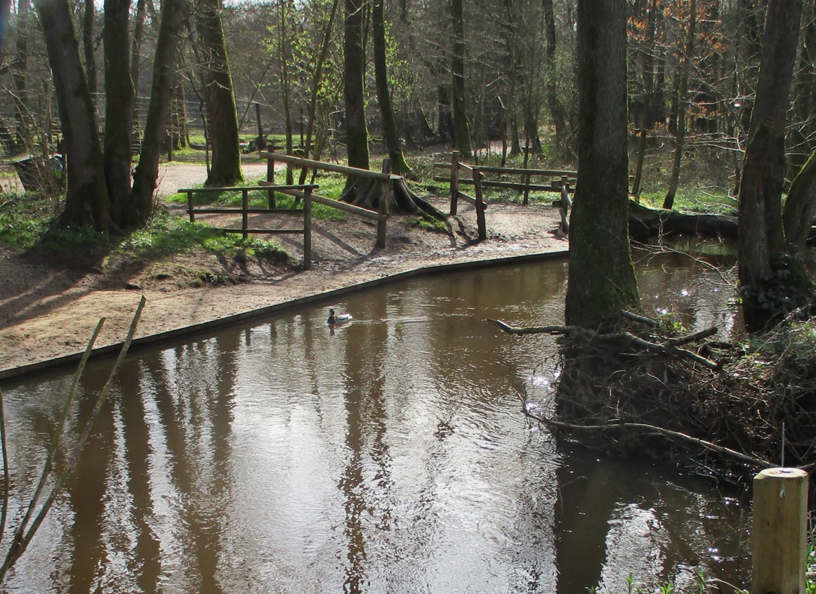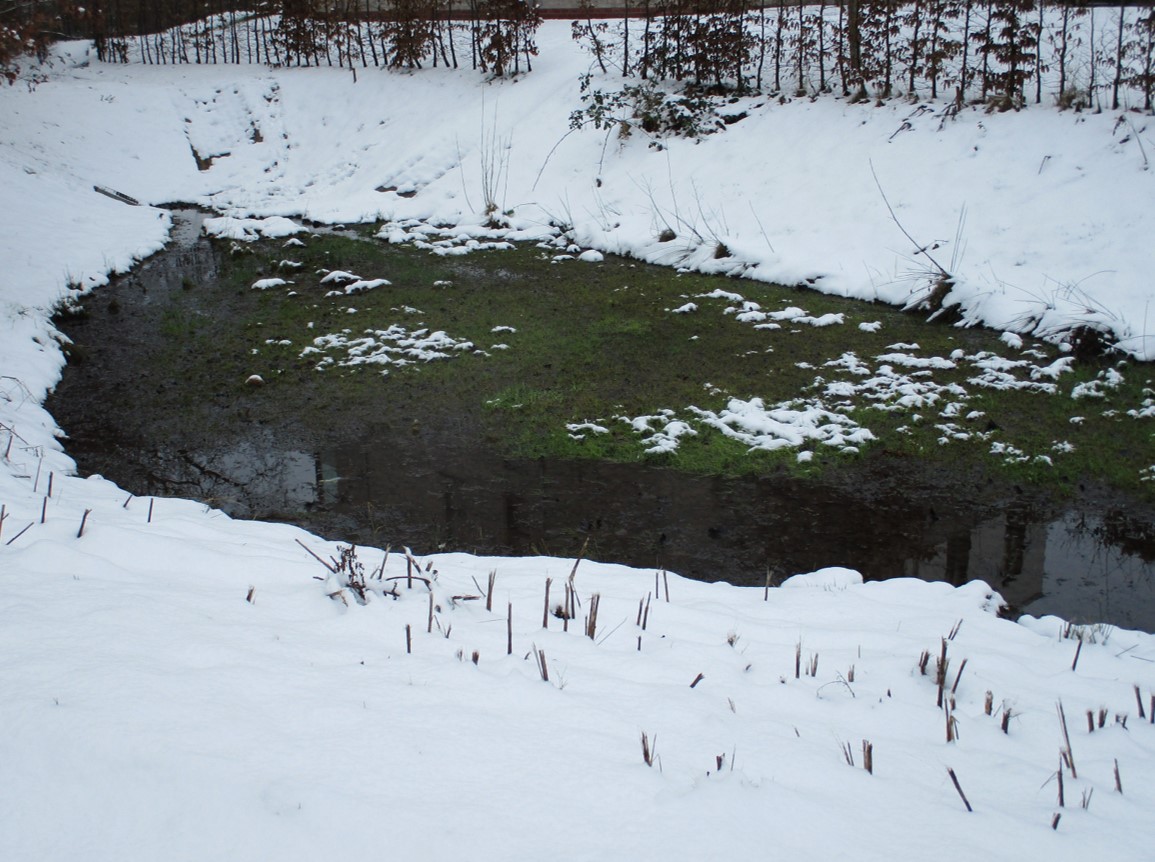 Das ist ein Feuerlöschteich, dessen wichtige ökologische Funktion unter anderem von Brutinseln für Vögel, auch Schutz für anderes Getier geprägt ist.