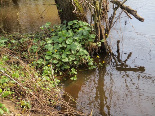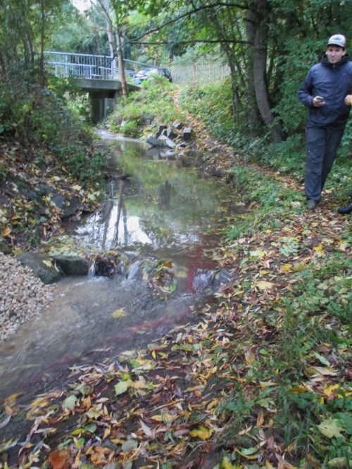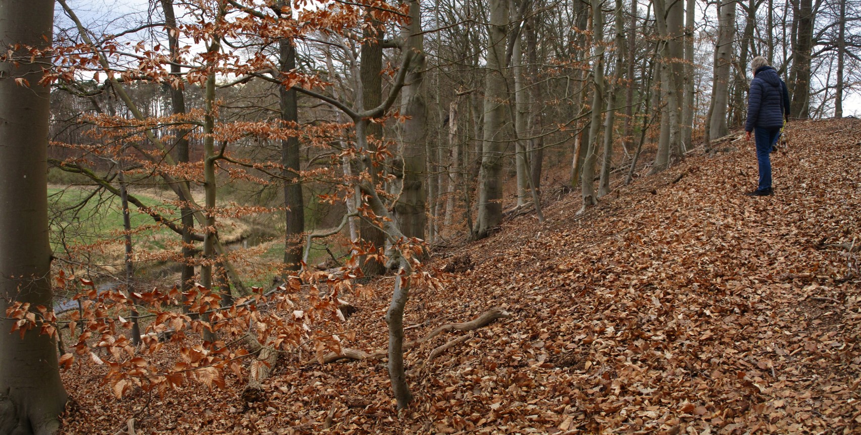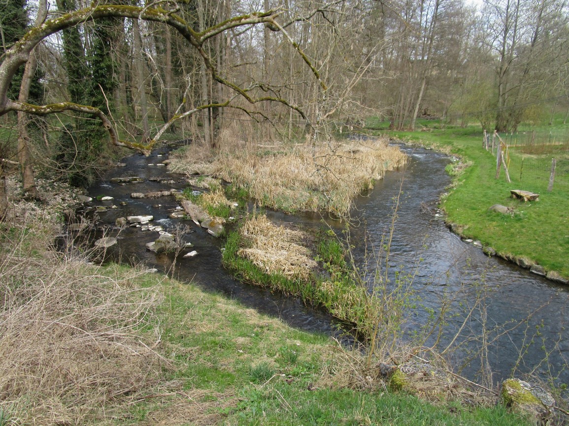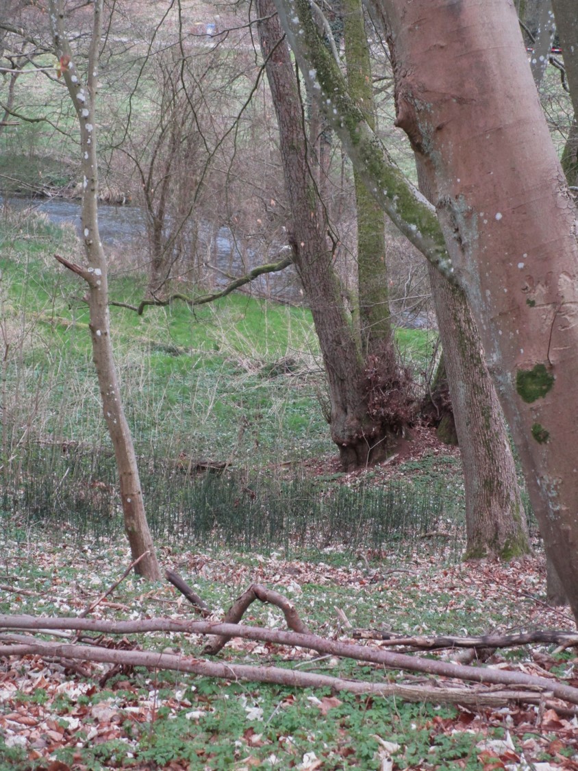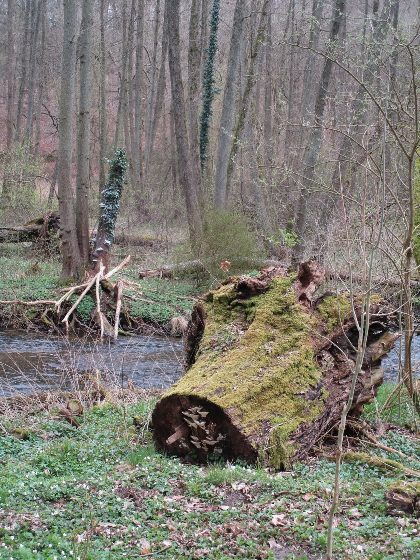 Gleichwohl bleibt ein Uferrand immer ein faszinierendes Forschungsfeld (die helle Leine, waagerecht vom Hund rechts aus dem Foto, hier unsichtbar).