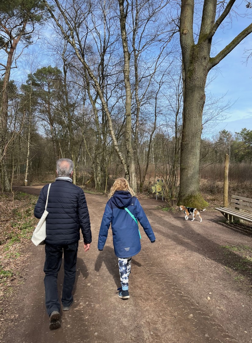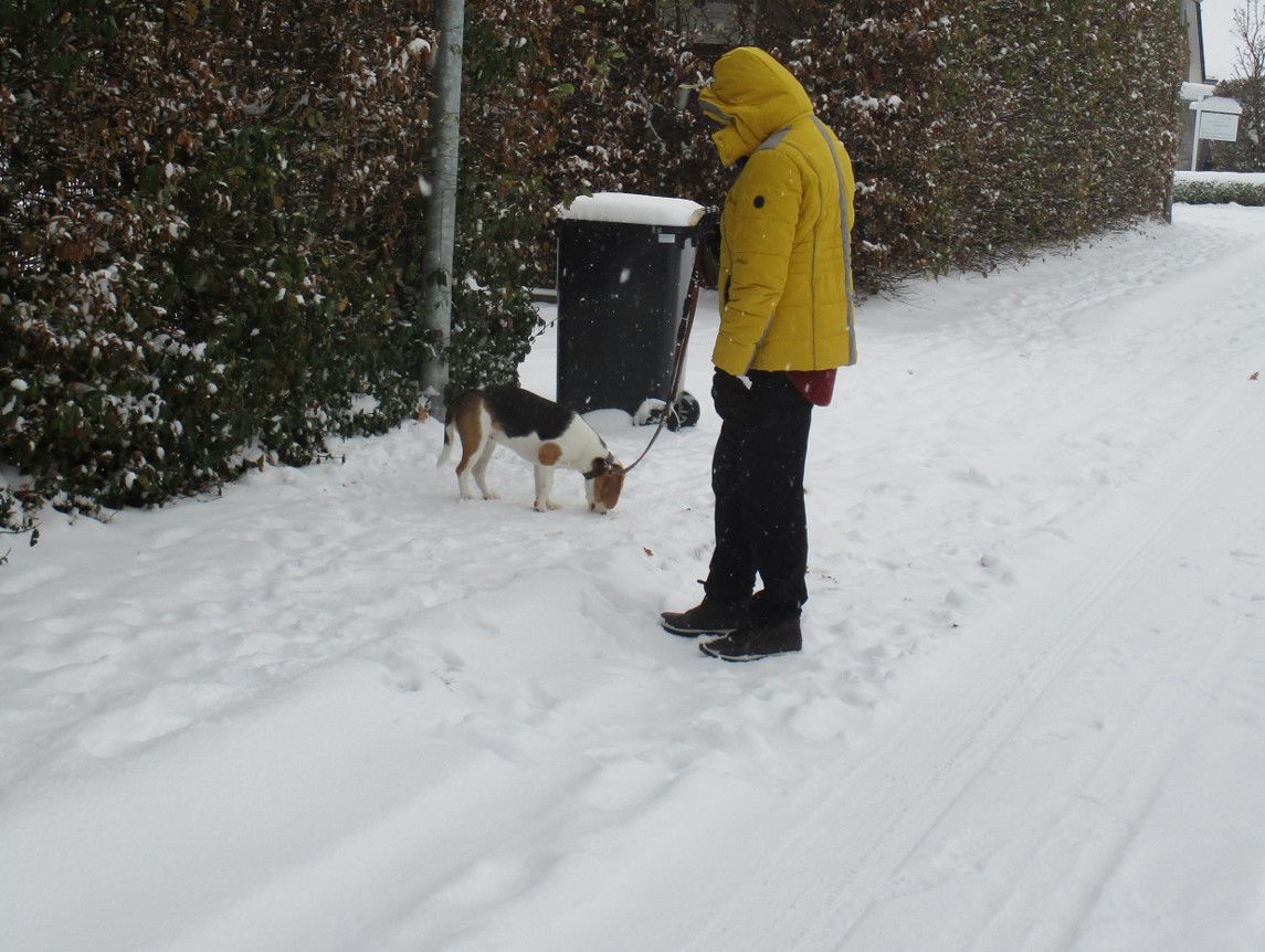 Vorsicht vor dem Hund! – Spannende Spuren führen zu spontanen Seitenwechseln! – Wir wissen Bescheid, alle sind für sich selbst verantwortlich (Mal merken: helle Flexi-Leine).