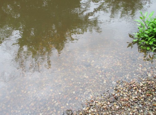 Der zweite Sattel Kies, schmaler Durchfluss – auch nach den Hochwässern (mehrfach und über längere Zeit bordvoll). – Dies ist ein kleiner Bach, und das zeigt er uns.