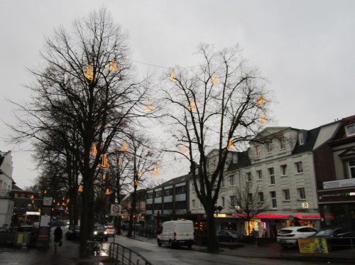 Blankeneser Bahnhofstraße morgens, vorweihnachtlich.