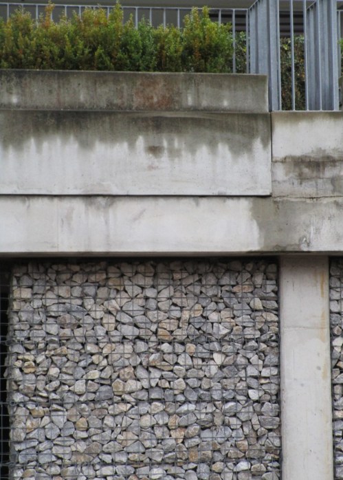 Am Sack- / Kehrbahnhof Blankenese studiere ich urbanes Grün und Grau in Form von BruchsteinGabione – zwei eher zweifelhafte Lebensräume.