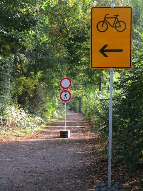 Alle Radelnden fahren, der Situation entsprechend, halt in geeignetem kleinem Gang. – Den Rest bis zur Vogelstation gehen wir zu Fuß. Frischer Wegbelag ist teils noch nicht in geeigneter Kornmischung festgerüttelt bzw. -gewalzt (morgens war ich mehr schlecht als recht „durchgerubbelt“).