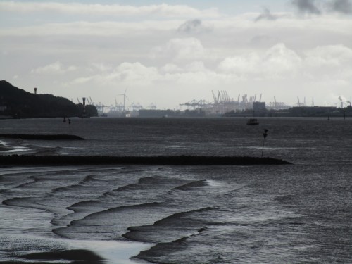 Da ich einiges im Spektrum vermisse, gucke ich noch über den Elbdeich Fährmannssand, gerade liegt das Watt angesichts Ebbephase weitgehend frei. Hier stehen etliche Limicolen in einem Priel.