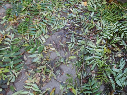 Auch im unmittelbaren Wallbereich gibt es neben Blüten einiges saisonspezifisch zu sehen – hier eine den Platz wechselnde Schmetterlingsraupe.