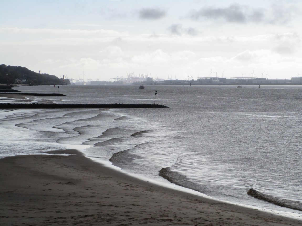 Da ich einiges im Spektrum vermisse, gucke ich noch über den Elbdeich Fährmannssand, gerade liegt das Watt angesichts Ebbephase weitgehend frei. Hier stehen etliche Limicolen in einem Priel.